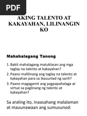 Aking Talento At Kakayahan Lilinangin Ko Pdf