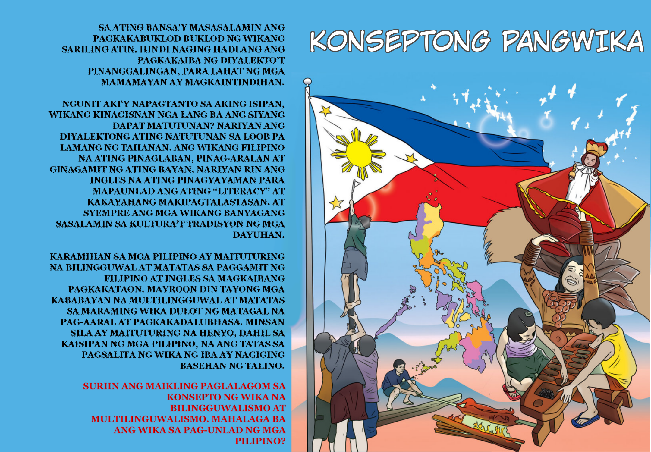 Ang wika ay maituturing na mas malawak kaysa diyalekto. A ng Tagalog Sinugbuanong Binisaya Ilokano Hiligaynon Samar-Leyte Pangasinan Bikol at iba pa ay mga wika hindi diyalekto at hindi rin wikain salitang naimbento upang tukuyin ang isang wika na mas mababa kaysa sa iba. Bago ituro ang ikalawang wika tulad ng English.